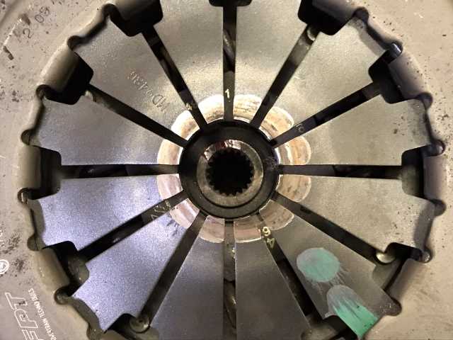フライホイールが偏芯して回転していたので、クラッチカバーも同様に偏芯して回転しており、レリーズベアリングの当り方も360°均一ではありません。